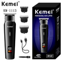 Kemei KM-1113 Professional Hair & Beard Trimmer with LCD Display – 1200mAh Battery, Stainless Steel Blade